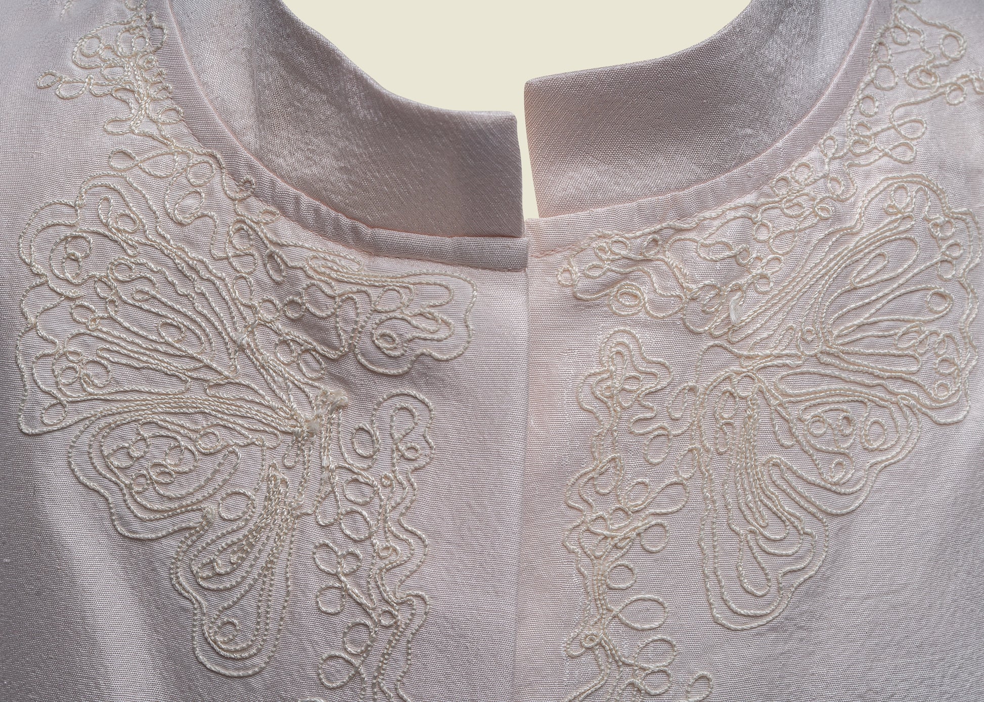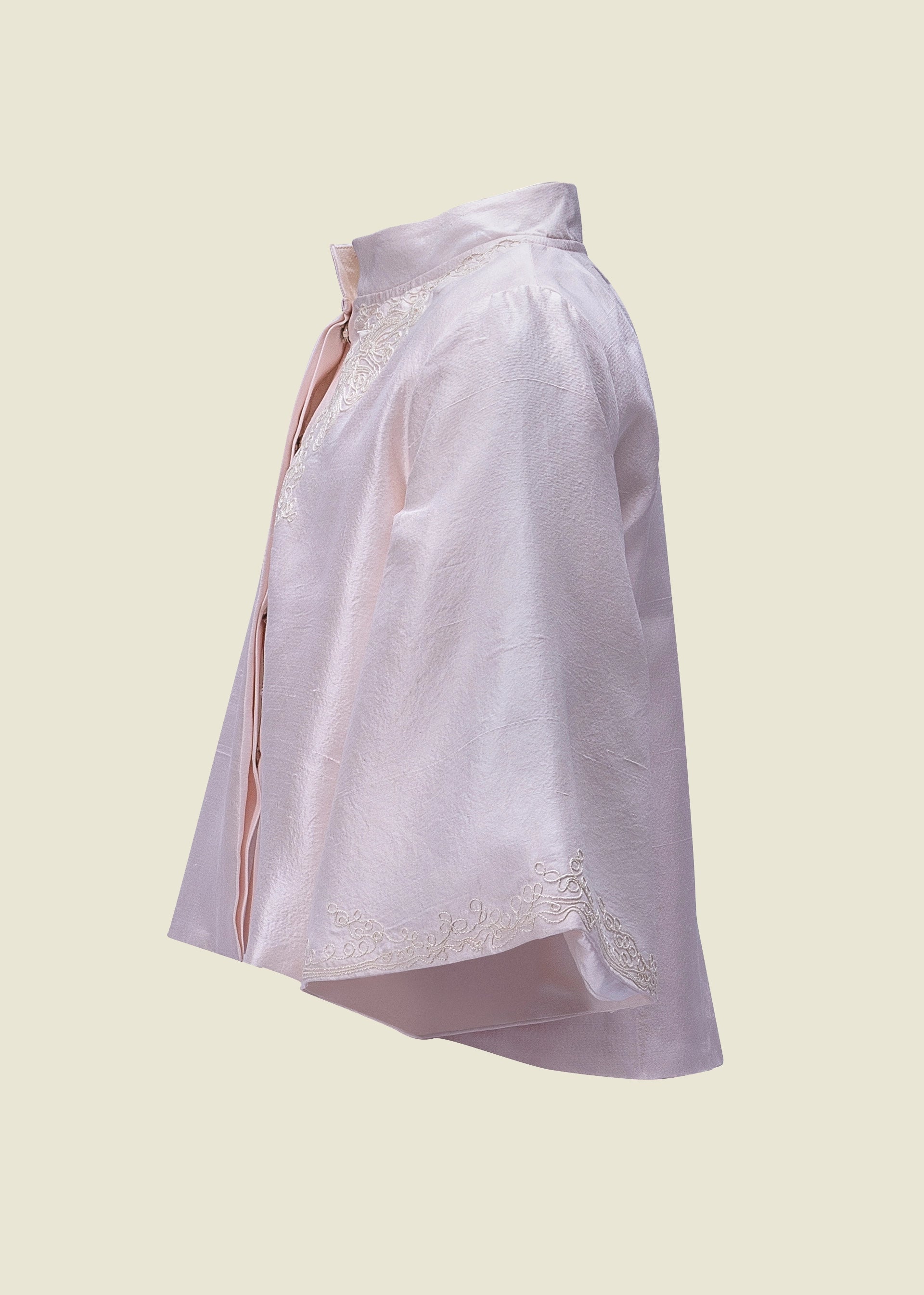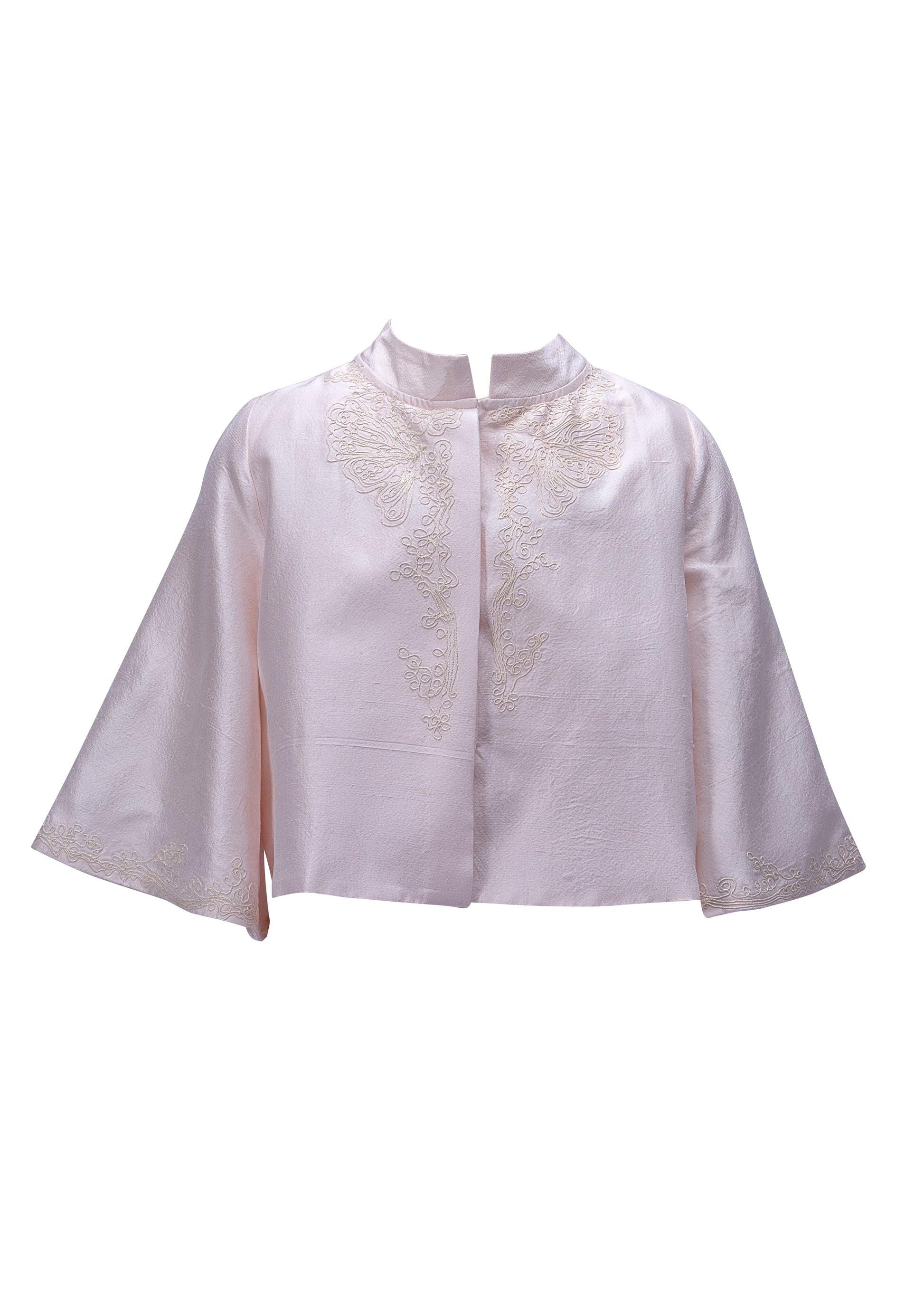 Colour: Cloud Pink Fabric: 100% Dupion Silk; Lining: Viscose Rayon Embroidery: Thread hand embroidery